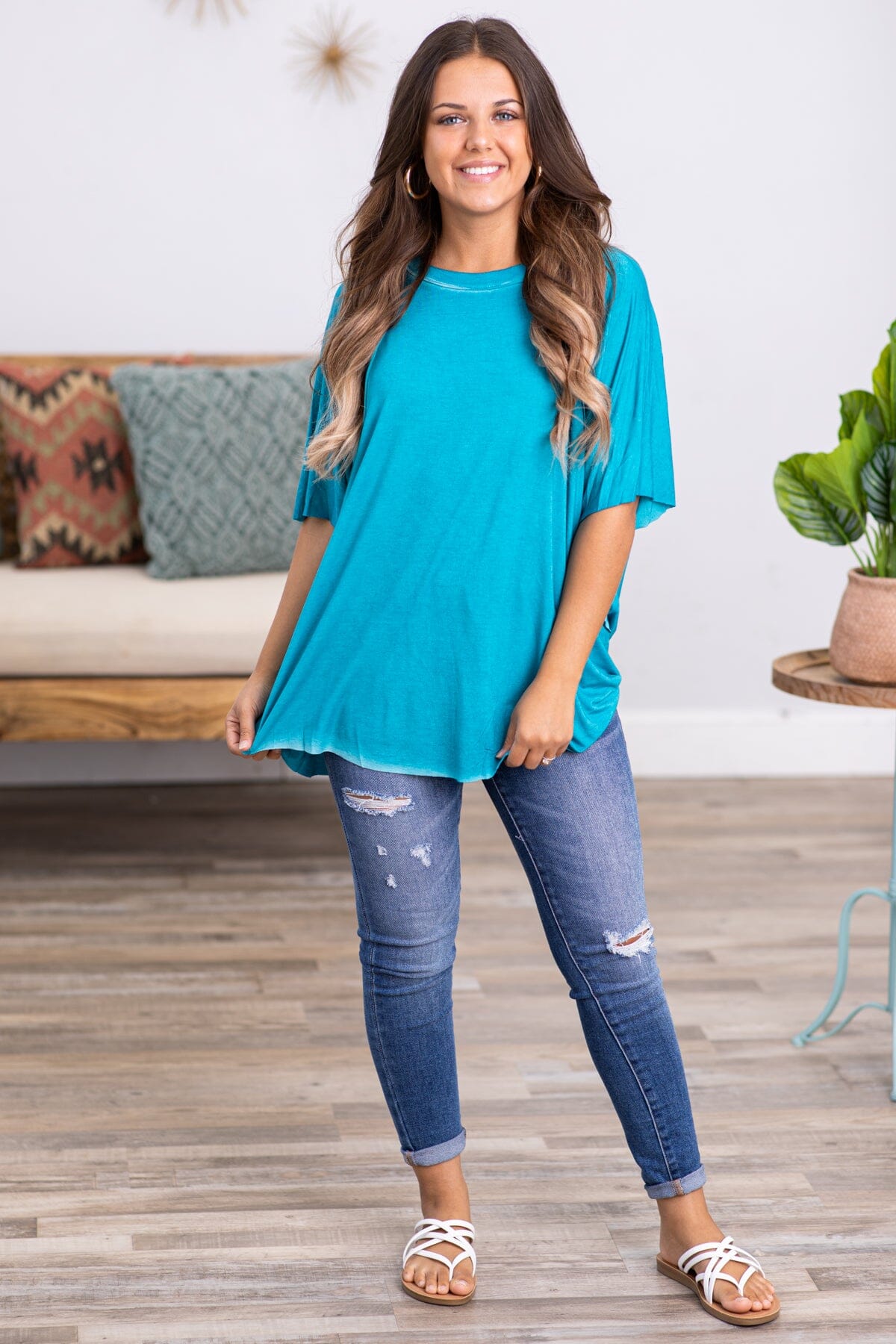 This top became a favorite immediately, very soft fabric and nice flowy fit! The color is great, I usually wear a large but went with a medium and it fits great!
