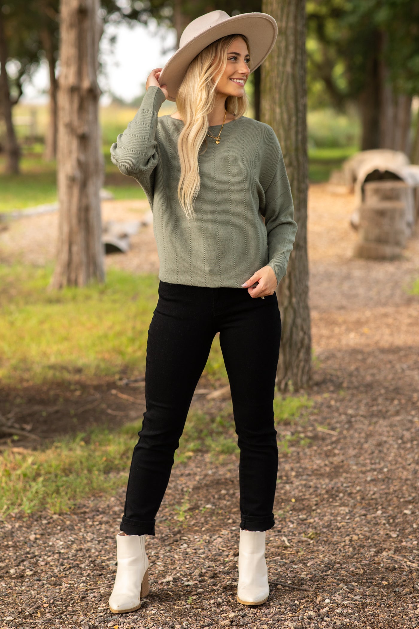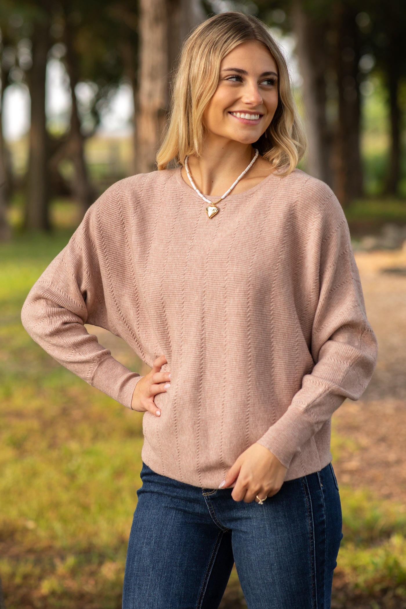 Textured Dolman Sleeve Boatneck Sweater