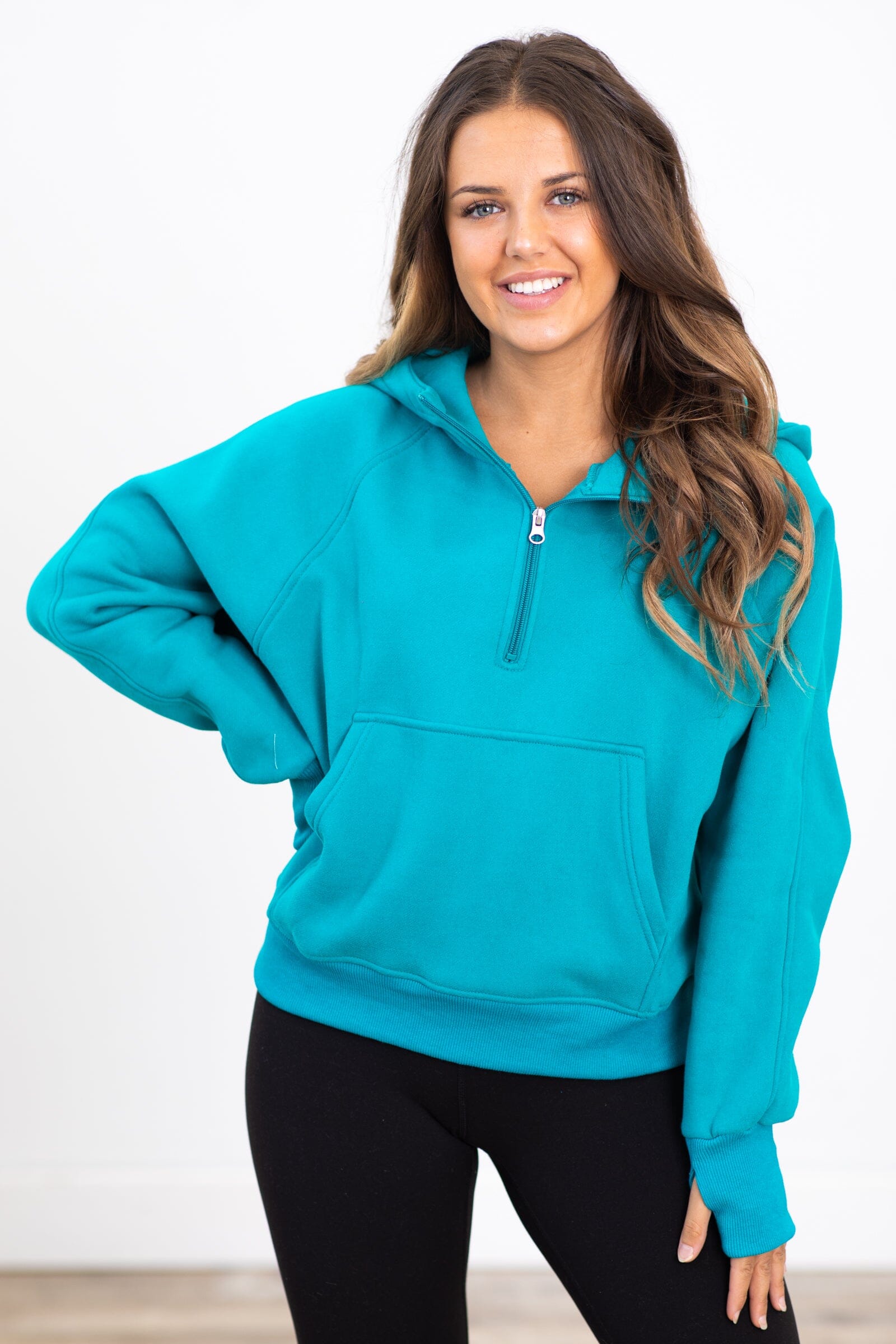 This is my 3rd hoodie that I bought in this style. I love them so much! The teal color is bright and it's so soft! I'm trying really hard to not buy a 4th color!