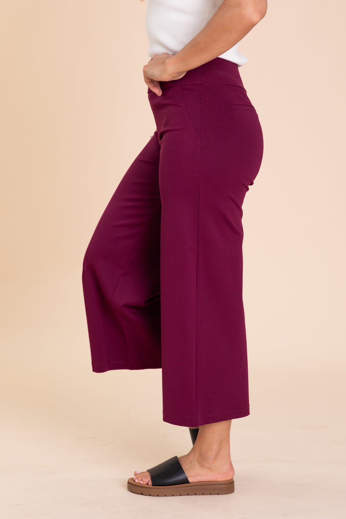 The ultimate in comfort, these cropped wide leg ponte pants come in a 26.5" inseam with a rise of 11"-12". Coming in sizes S-3XL, they fit true to size and feature a pull-on waistband so you don't have to fumble with zippers or buttons. From the workday to the weekend, you won't want to take these off!