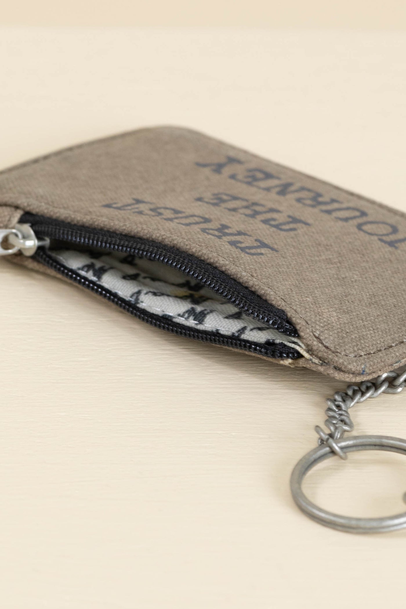 • This ID pouch is the perfect size to keep your spare change in one spot and can also be used as a small carrier when attending a concert or an event. It has a pouch for your IDs, a zipper closure to keep your money secure and a key chain with a clip.
