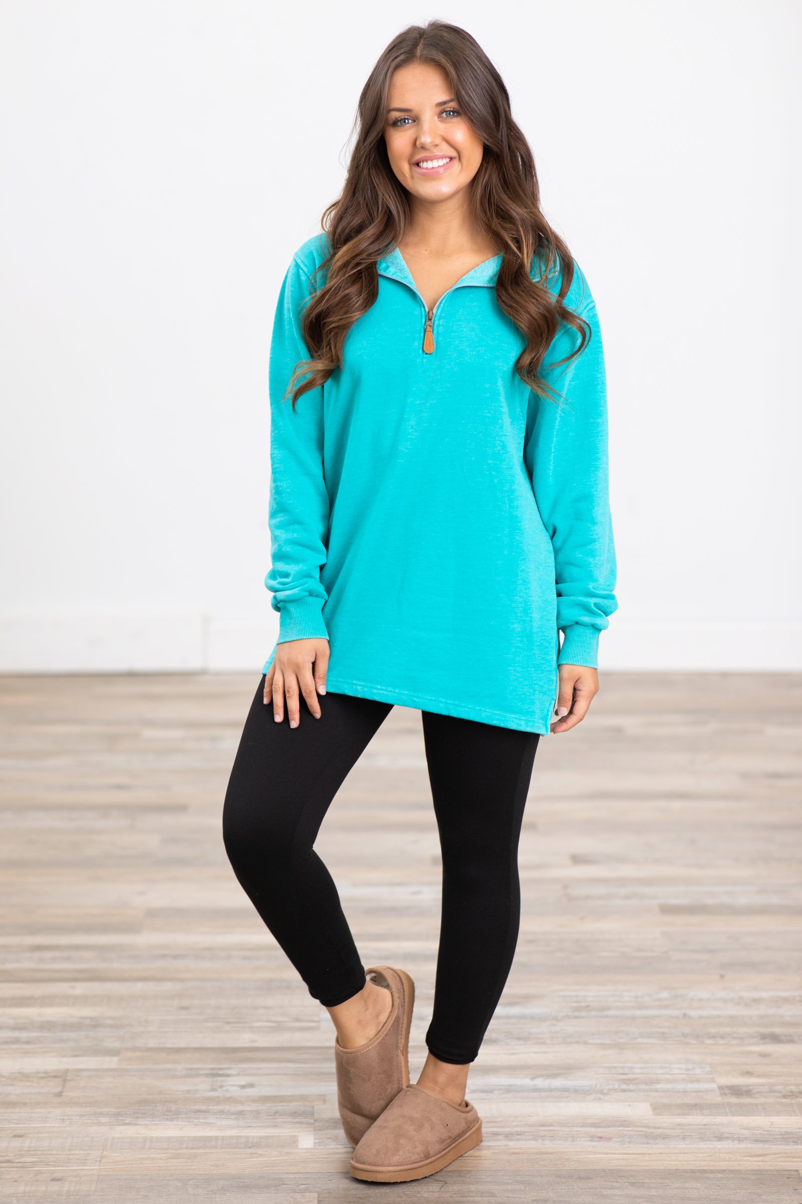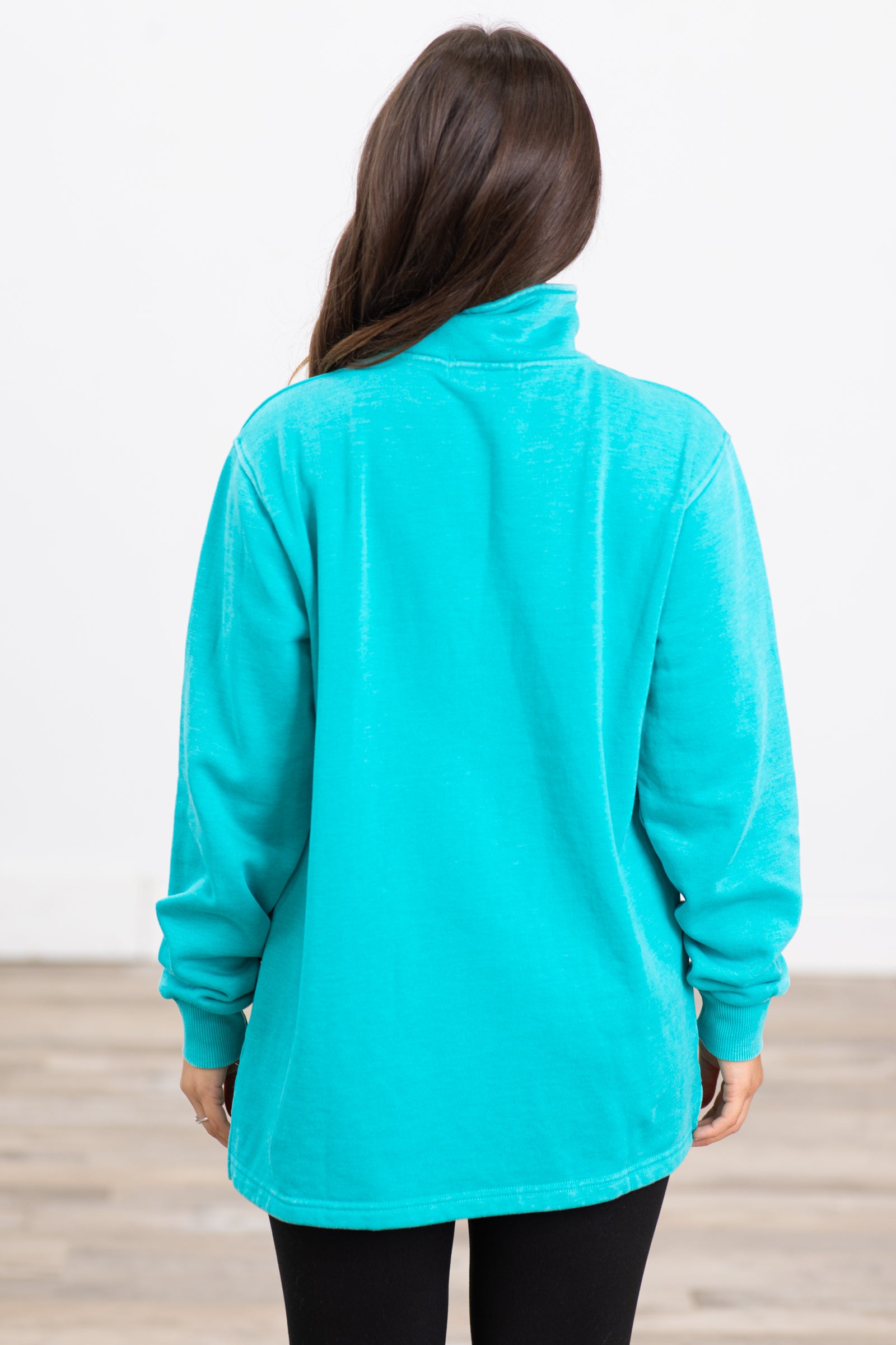 Turquoise Fleece Pigment Dyed 1/4 Zip Pullover