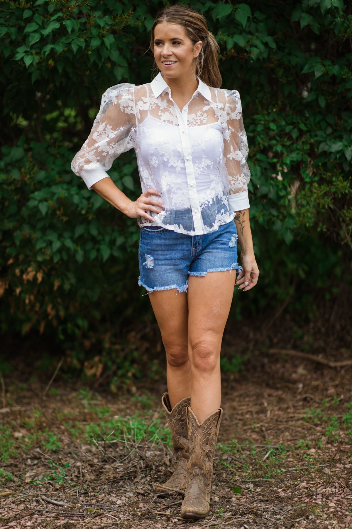 This is one of the prettiest tops I own. Very feminine and a perfect fit. Looks beautiful with a white cami under or striking with a pastel or bold cami. I cannot describe how much I love this piece. It can be dressed up with a skirt or down with jeans.