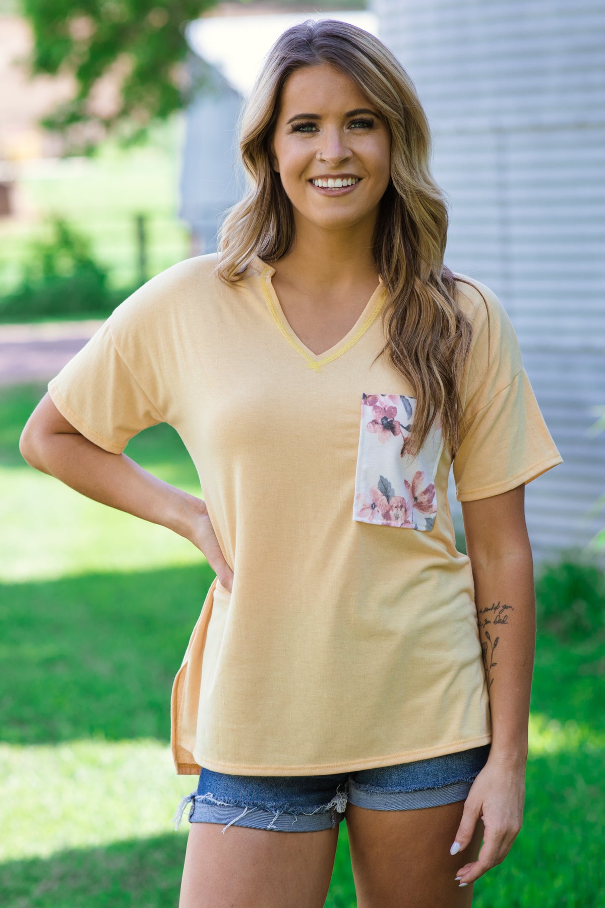 I love the loose fit with the fun design on the back and pocket!